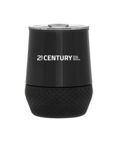 12 oz double wall 18/8 stainless steel thermal tumbler with copper vacuum insulation, push-on lid, matching swivel closure, and removable silicone base.