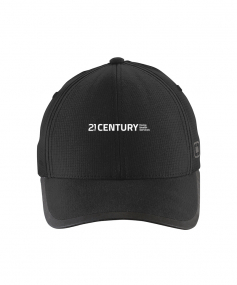 Fabric is 100% polyester pinhole woven mesh with structured profile, mid features, black reflective O heat transfer on side panel black reflective welding on bill, and OGIO seam taping. Low-profile hook and loop with black reflective stacked O heat transfers.