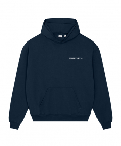 A boxy hoodie with a dry hand feel. The unique character of organic cotton French terry provides a perfect place for a brand logo.